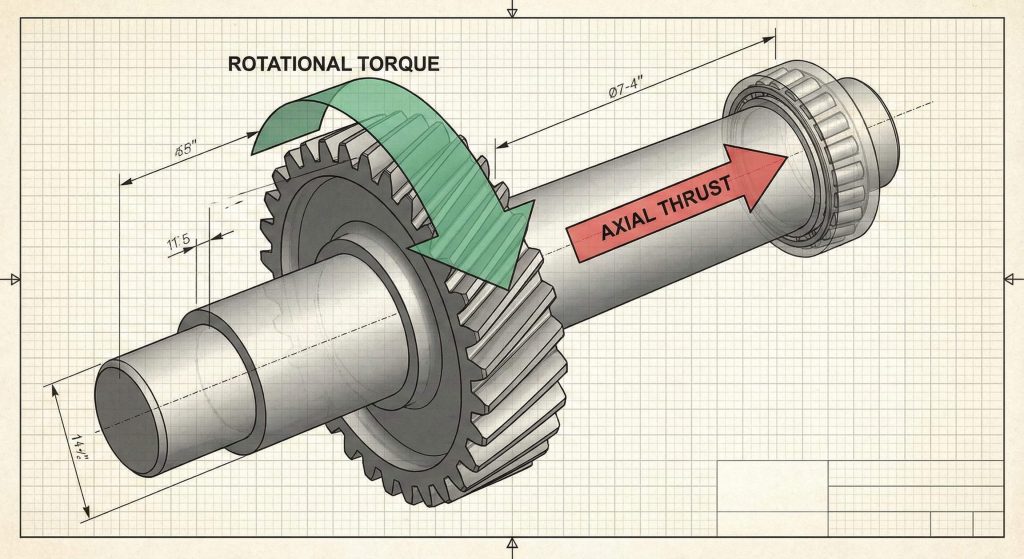 You must use tapered roller bearings or angular contact bearings to effectively manage these axial loads. These components allow the shaft to rotate freely while resisting the lateral pressure generated by the mesh.