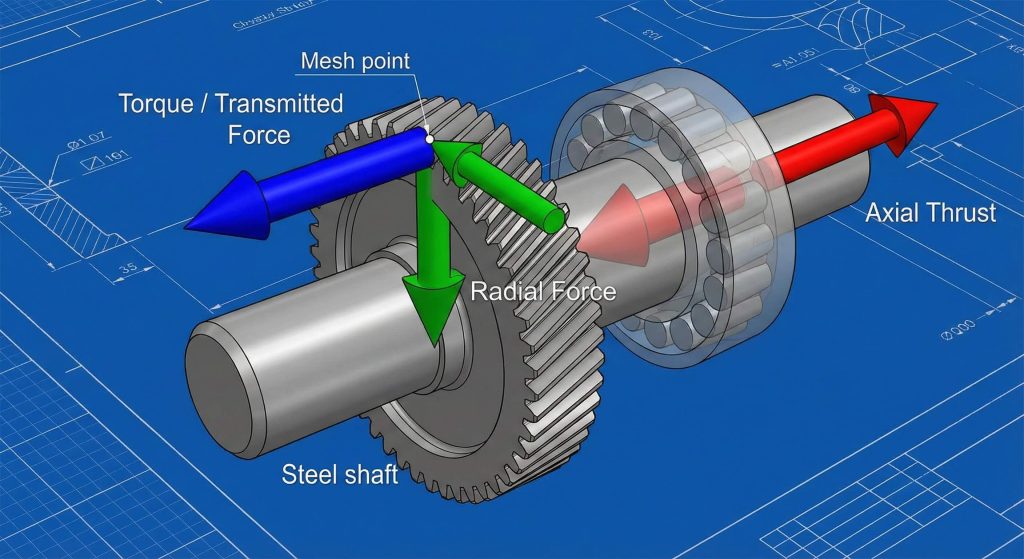 Using angular contact or tapered bearings is standard practice for handling these lateral loads. These components ensure that the gear remains in its intended axial position during the highest torque cycles.