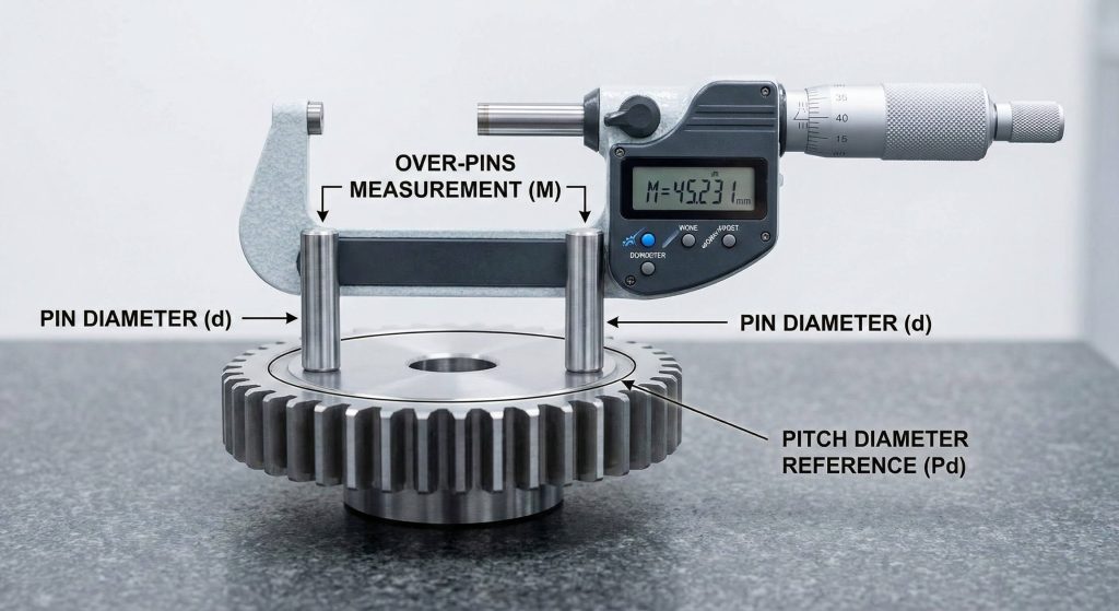 You cannot measure the pitch diameter of a spur gear tooth directly because it represents a theoretical line in space. You must use indirect methods to verify the accuracy of your gear components during the inspection process. The most reliable technique involves placing precision dowel pins between the teeth and measuring the total distance over them. You then subtract the pin diameter from the total measurement to accurately estimate the reference circle.