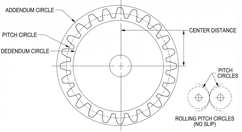 Because the pitch diameter dictates the mating envelope, it remains the primary reference for calculating center distances between shafts.