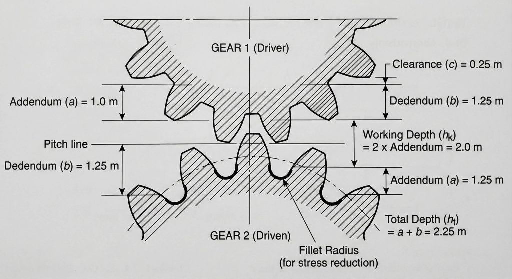 Proper clearance at the bottom of the tooth space prevents the tip of the mating gear from hitting the root.