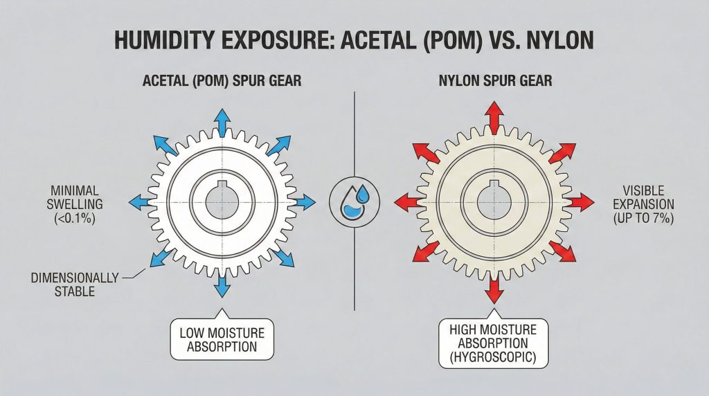 This is where it gets interesting… some plastics swell when they get wet, which ruins the gear mesh. Acetal stays the same size regardless of humidity, ensuring your gear teeth don’t bind or slip.
