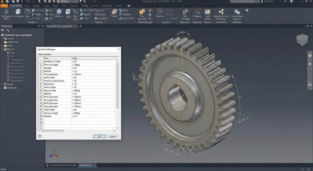 Diametral pitch and pressure angle serve as the primary variables that dictate the overall size and strength of your gear. You must establish these relationships early in your spur gear model to prevent manual rework when design requirements change. What is the real story? Linking these parameters through the Equations Manager rather than hard-coding dimensions allows a single file to represent thousands of configurations.