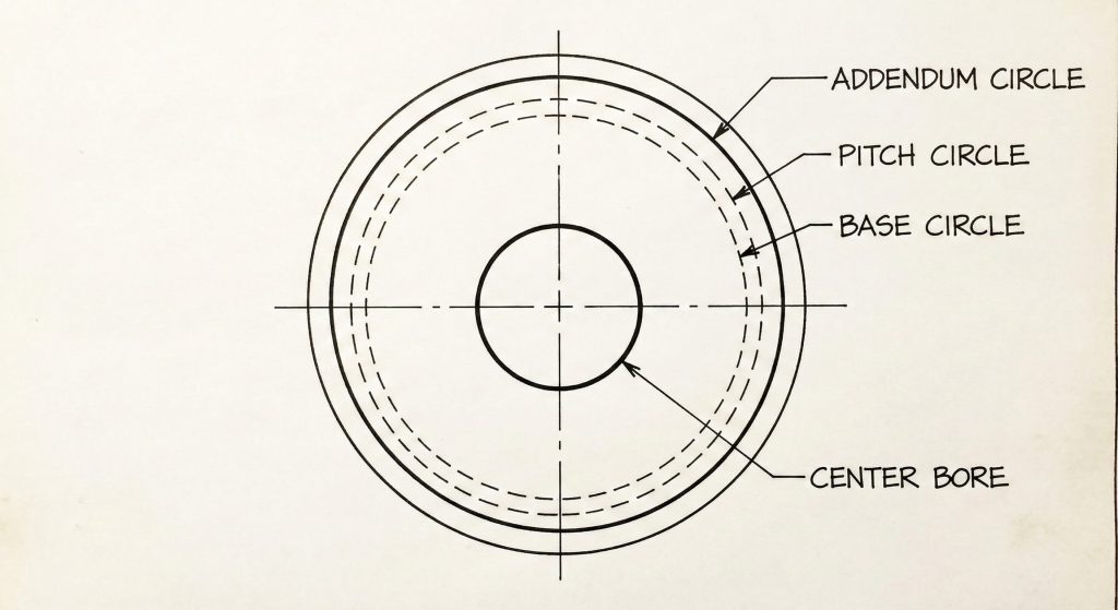 Reference circles for pitch and base diameters must remain as construction lines to avoid interfering with solid boss features. These lines provide the necessary mathematical anchors for the involute curves you will plot later.