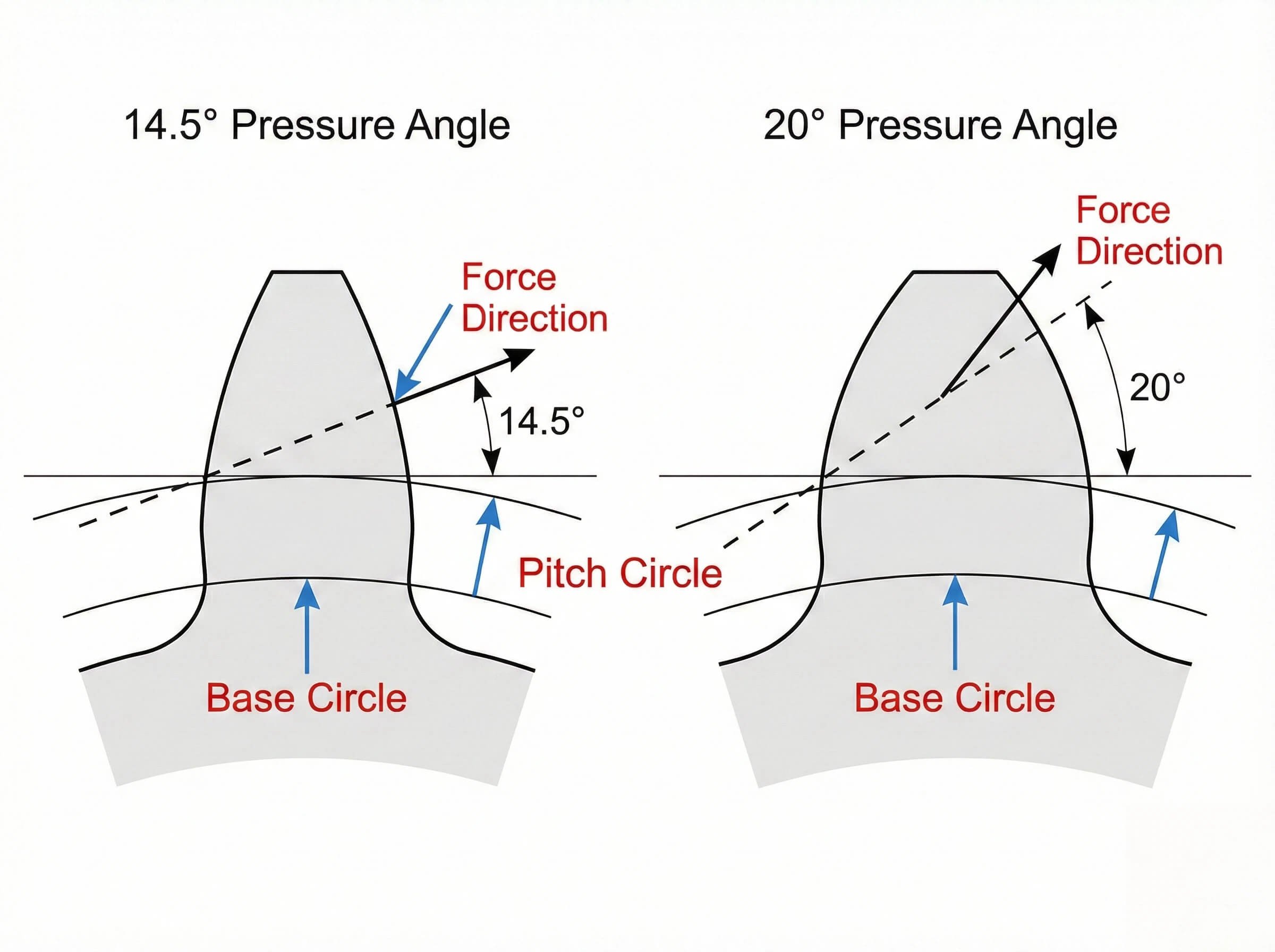 | Pressure Angle | Tooth Strength | Bearing Stress |