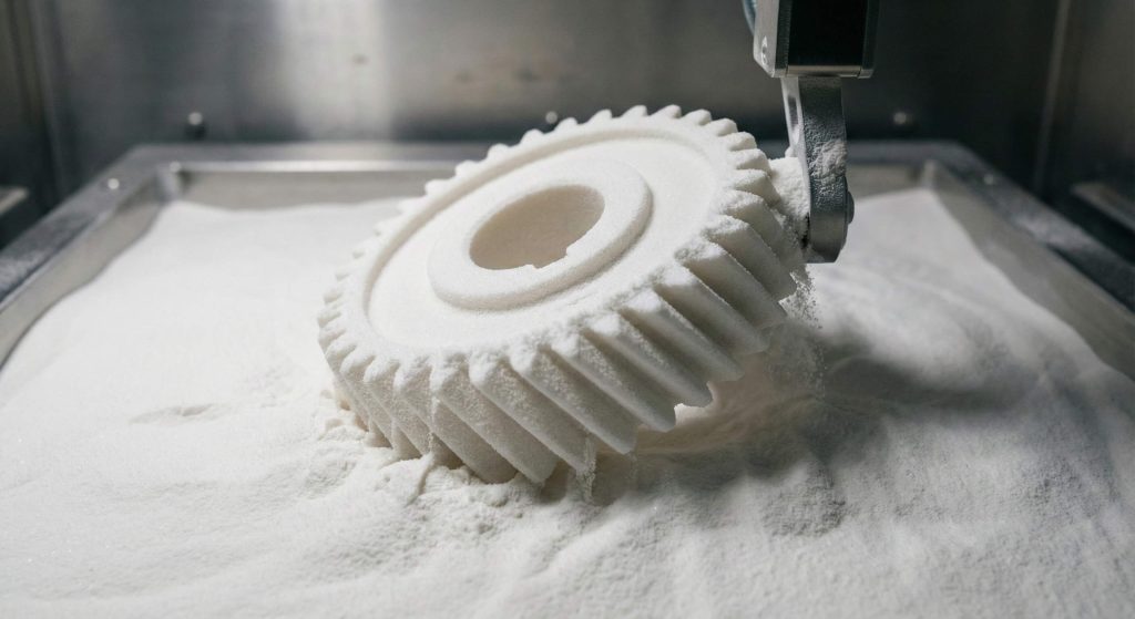 Selective Laser Sintering (SLS) 3D printing suits a nylon helical gear for functional prototyping and low-volume replacement parts without the need for support structures. This additive process allows engineers for testing complex internal geometries and gear ratios within hours instead of waiting weeks for custom tooling. While 3D printed parts might lack the surface smoothness of molded components, they provide sufficient strength for functional prototyping and low-speed testing.