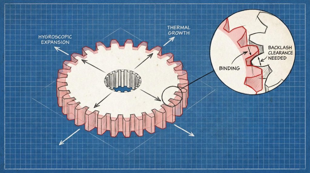 Key Takeaway: Success with nylon gears depends entirely on proactive engineering that accounts for moisture expansion and thermal growth during the initial design.