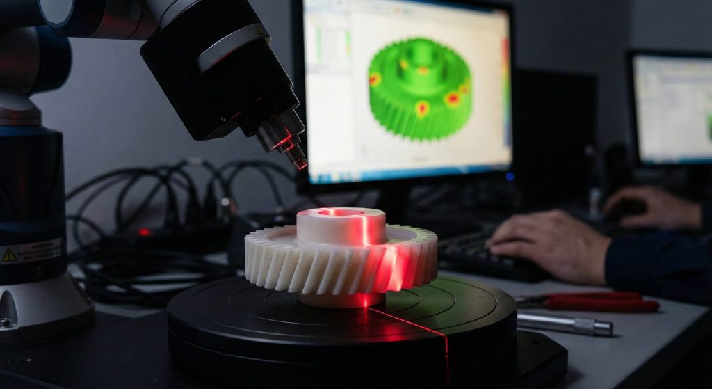 Inspecting a finished nylon helical gear requires non-contact optical measurement systems to ensure tooth profiles remain accurate without being deformed by physical probes. Using traditional mechanical calipers often applies enough pressure for slightly compressing the soft polymer which results in inaccurate or misleading dimensional readings. Optical comparators and laser scanning systems provide high-resolution data regarding the tooth profile without ever touching the sensitive surface of the part.