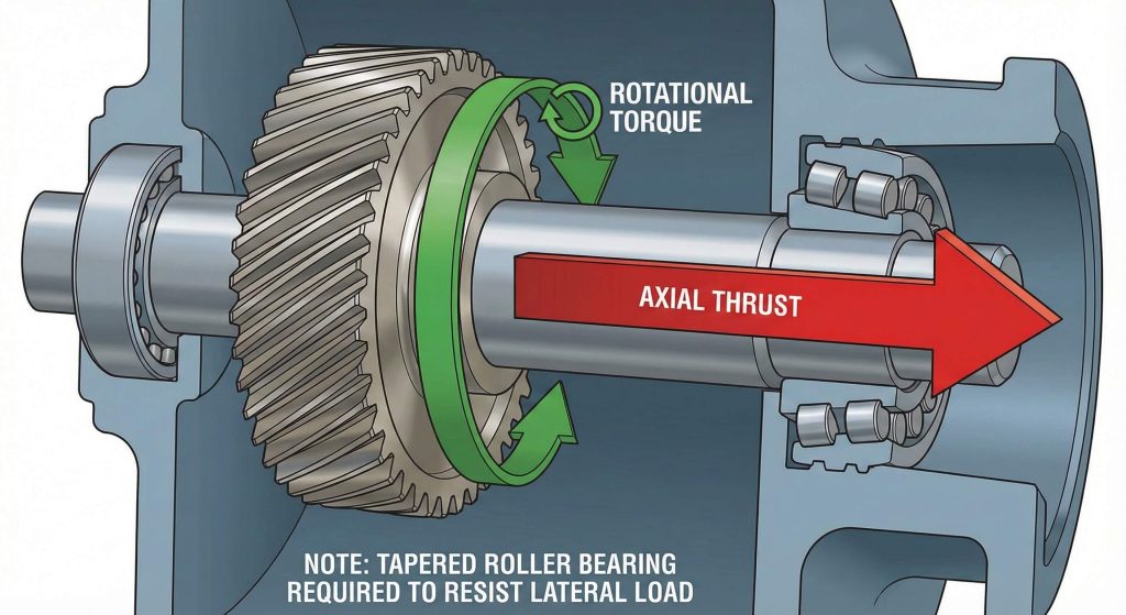 Key Takeaway: Managing axial thrust is essential for bearing longevity especially when the helix angle exceeds twenty degrees in heavy industrial applications.