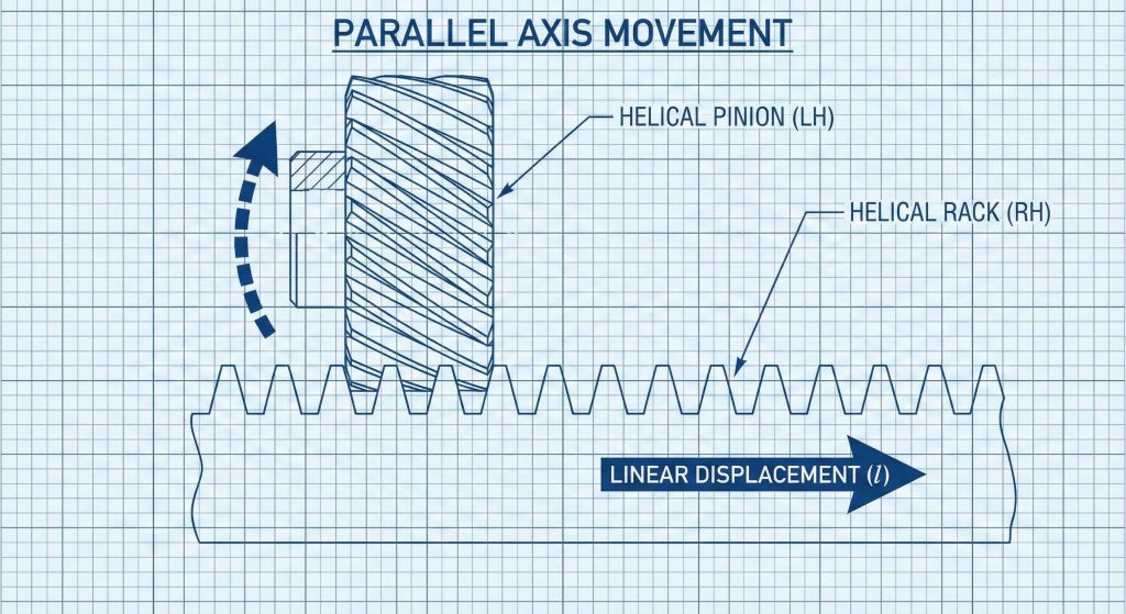 Key Takeaway: Proper rack-and-pinion synchronization depends on matching the transverse pitch to the desired linear travel per revolution of the drive shaft.