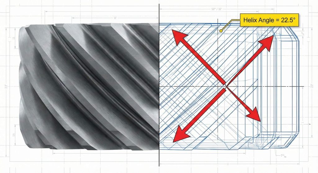 | Helix Angle | 22.5° | Zero net axial thrust |