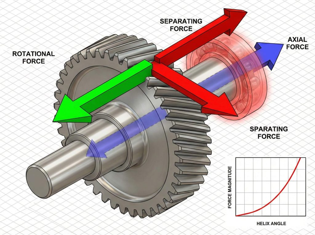 The pressure angle of helical gear is a primary factor in determining the magnitude of separating forces that your bearings and gear shaft must withstand during operation. When teeth engage, the pressure angle splits the transmitted force into two components: a tangential force that does the work and a radial force that tries to push the gears apart.