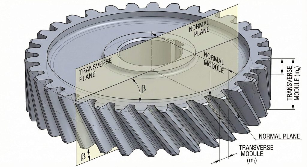 Reading a helical gear module table accurately requires identifying the specific measurement plane, such as the normal or transverse plane. You must distinguish between the normal module used for tooling and the transverse module used for center distance. This distinction is vital for helical gears where the teeth are cut at a specific helix angle.