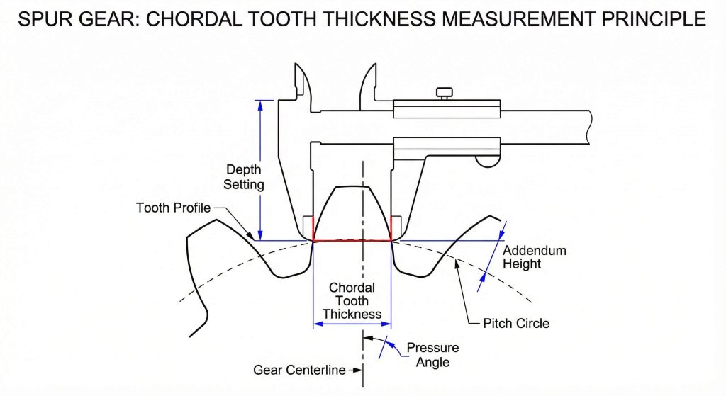 Key Takeaway: Chordal verification requires a perfectly machined outside diameter since the tool depth relies on the gear tip as a reference point.