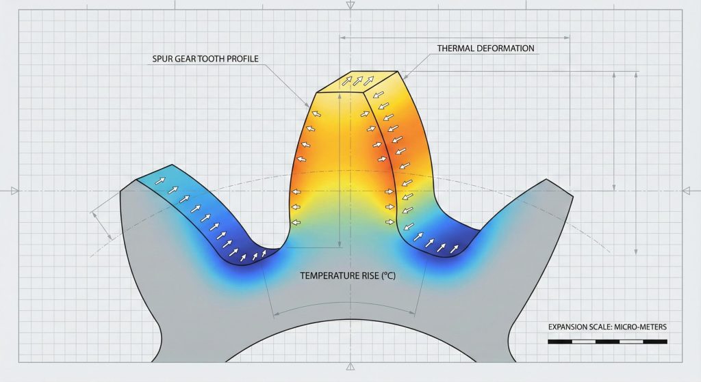 - Thermal Expansion: The physical growth of the gear tooth as it gets hot.